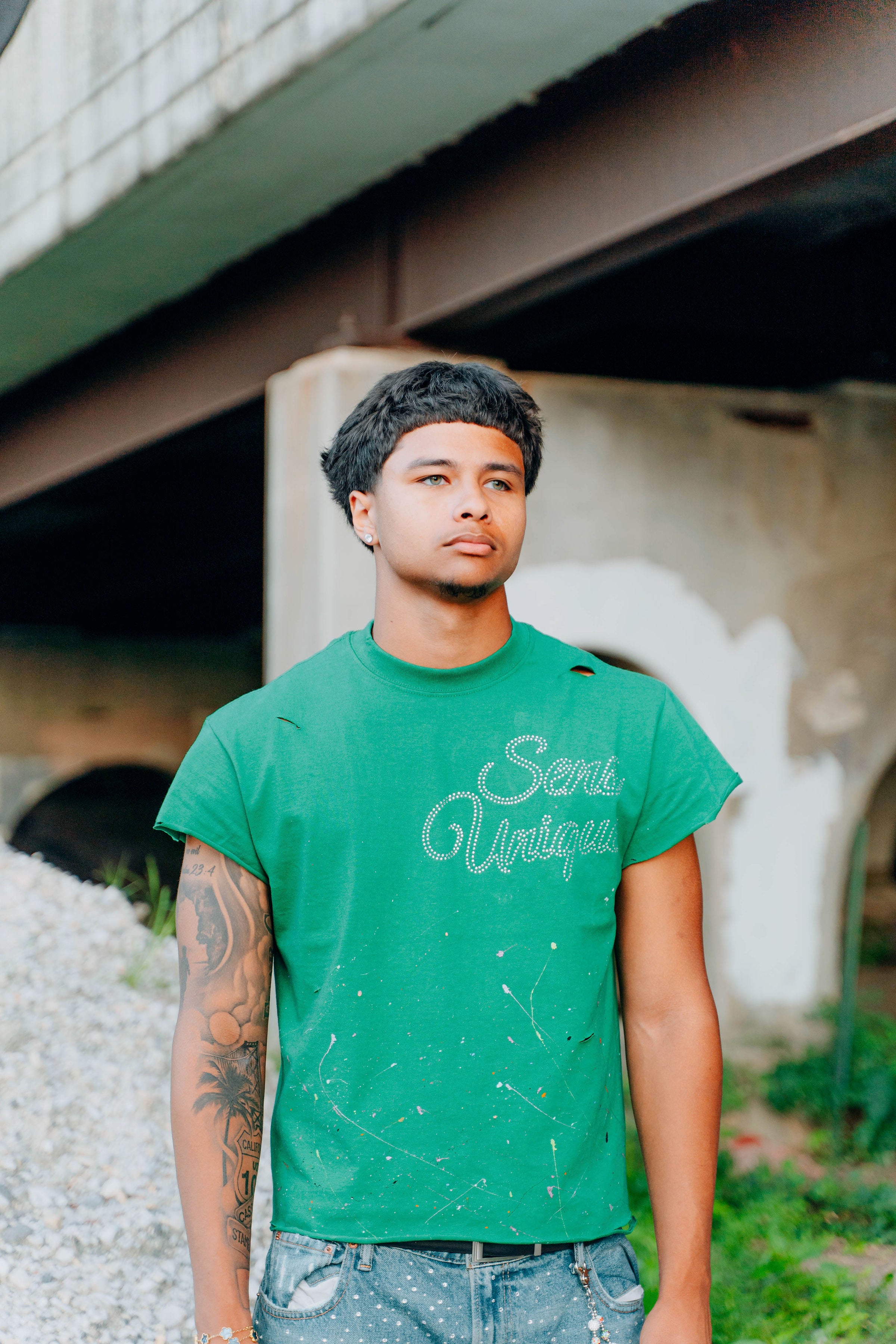 SENS UNIQUE SIGNATURE CUTOFF TEE VERDE LUXE