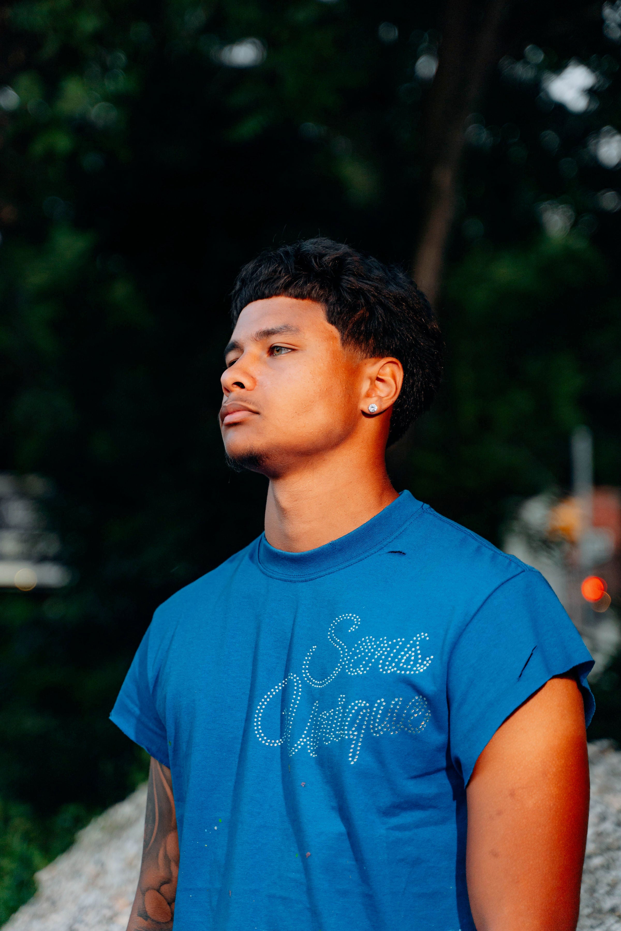 SENS UNIQUE SIGNATURE CUTOFF TEE BLEU CELESTE